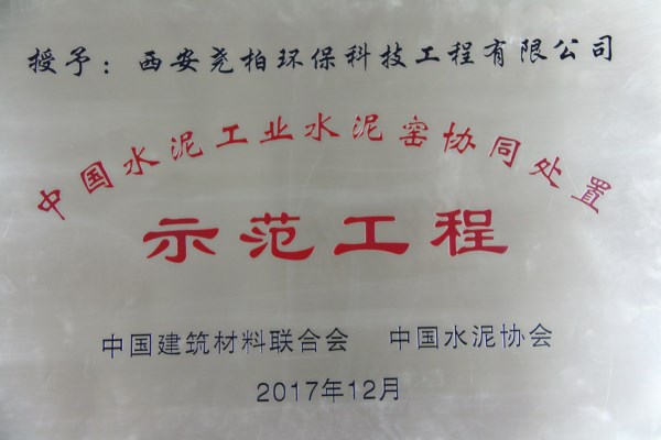 堯柏環保公司榮獲2017年“中國水泥工業水泥窯協同處置示范工程”稱號